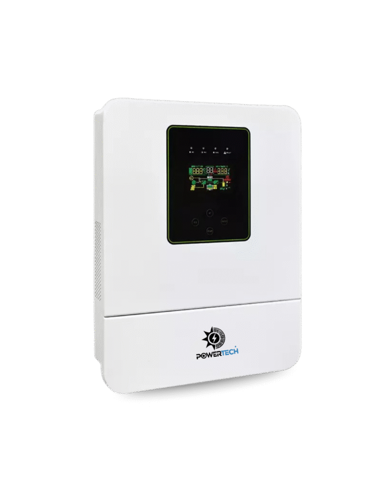 The POWERTECH IP54 3.6KW MPPT Hybrid Solar Inverter is a reliable wall-mounted inverter designed for